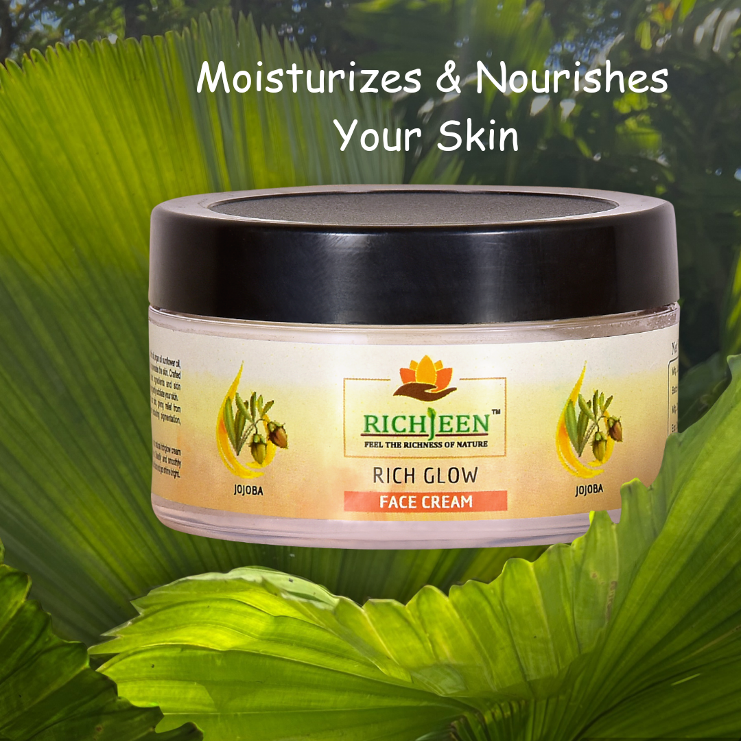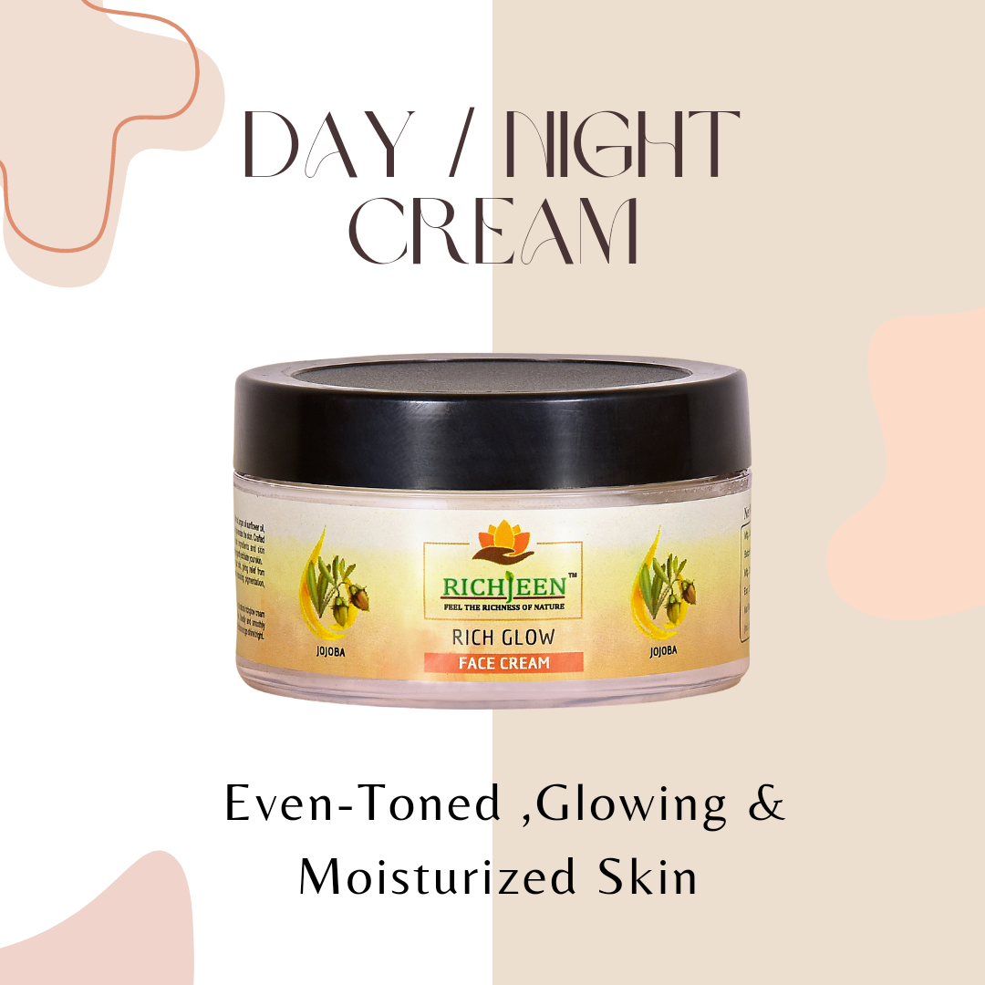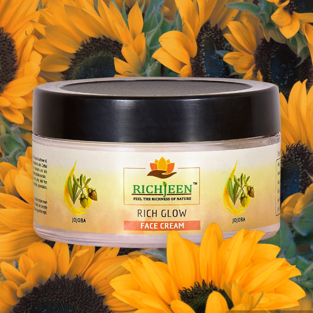RichGlow Face Cream enhances the natural radiance of the skin. It is the best glowing skin cream and brighter skin cream. The face shine cream makes the skin soft, smooth, and supple, and also prevents skin aging. RichGlow Face Cream is suitable for both men and women, so there's no need to worry about using a face glow cream for men. It is pure ,natural ,and ayurvedic face cream for glowing skin .