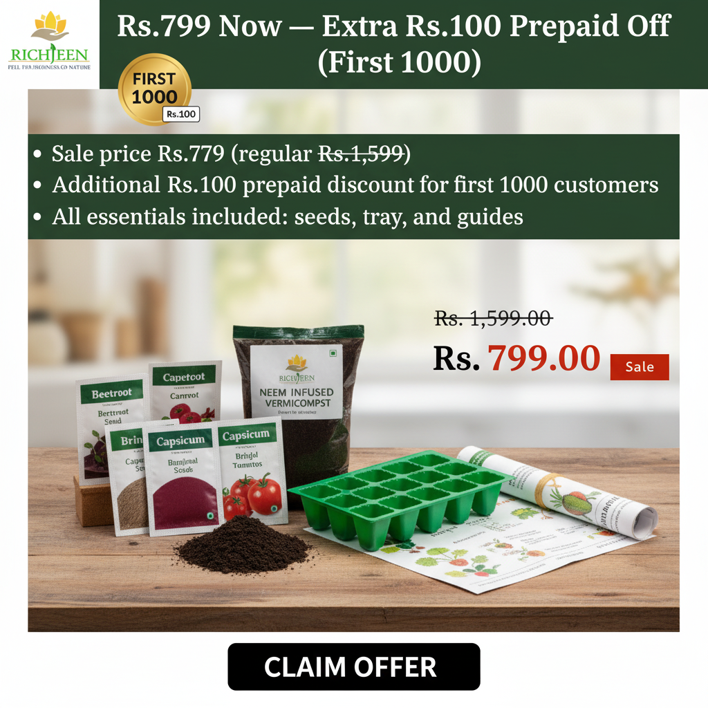 MIX SEED+NEEM RICH VERMICOPOST+SEEDING TRAY with proper guide